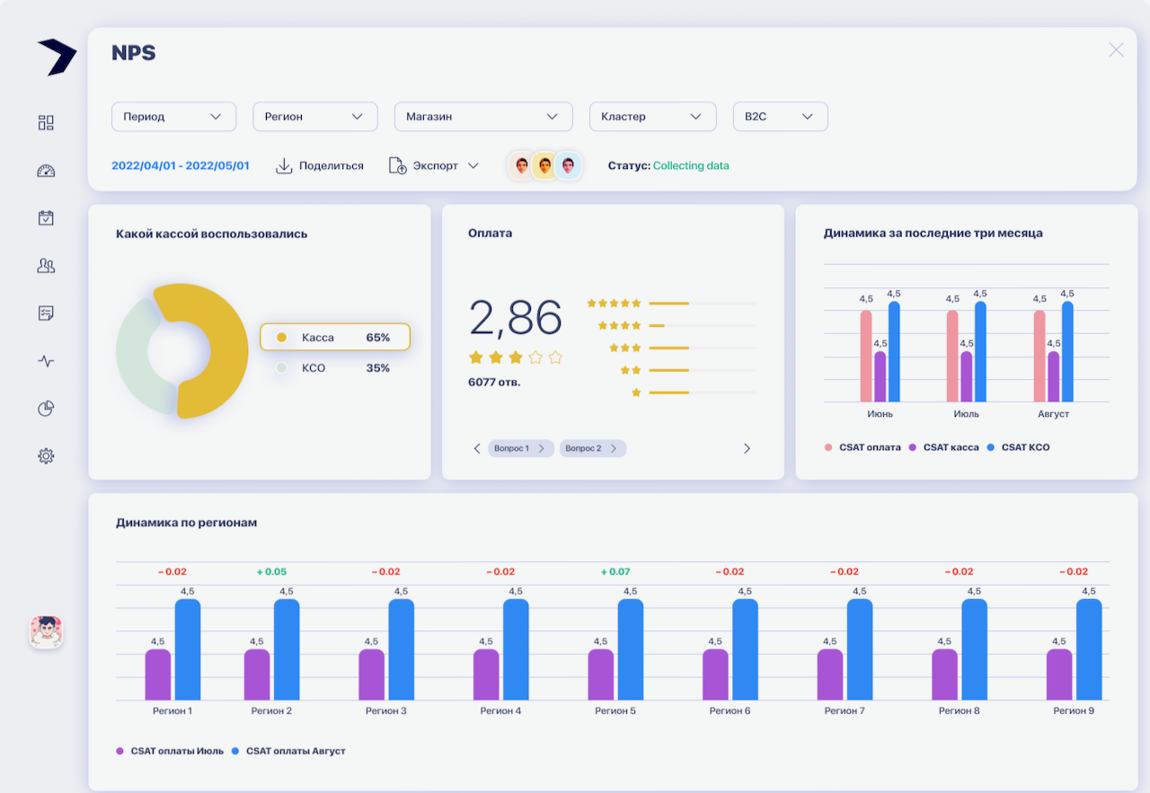Всё, что нужно для управления опытом — от опросов до аналитики и автоматических действий. Платформа помогает видеть клиентов в цифрах и эмоциях, реагировать вовремя и повышать лояльность.