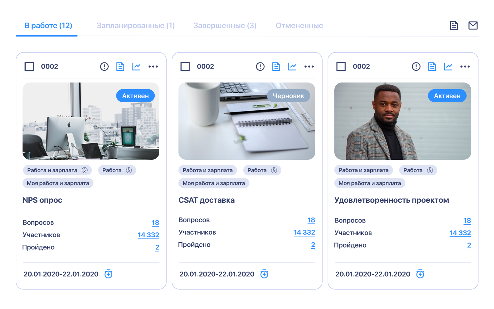 Наша платформа позволяет собирать отзывы клиентов в наиболее значимые точки их пути — после покупки, общения с поддержкой или пользования продуктом. Вы можете настроить опросы, которые запускаются автоматически в нужное время и в нужном канале: по email, в приложении, в чате или на сайте.