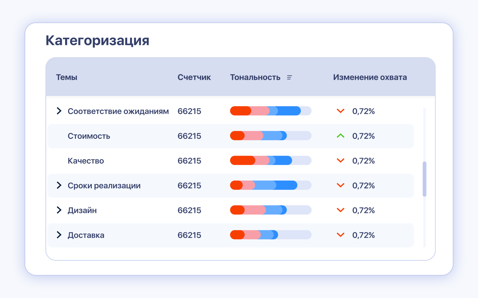 Собирайте не просто ответы, а ценные инсайты. Алгоритмы AI автоматически распознают темы, анализируют тональность открытых комментариев и дают рекомендации. Всё — в реальном времени.
