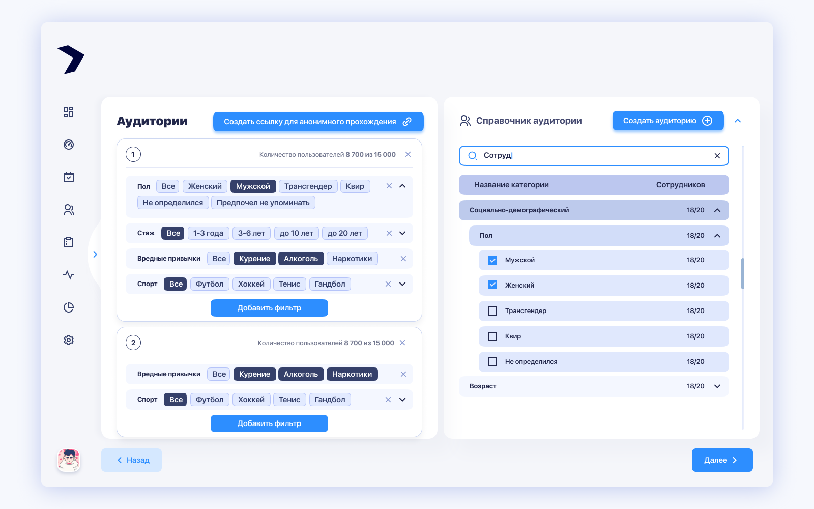 Настраивайте правила, по которым рассылка запускается: по событию, по дате, по изменению статуса или на основе ответов. Вы создаёте полноценные сценарии без программистов.